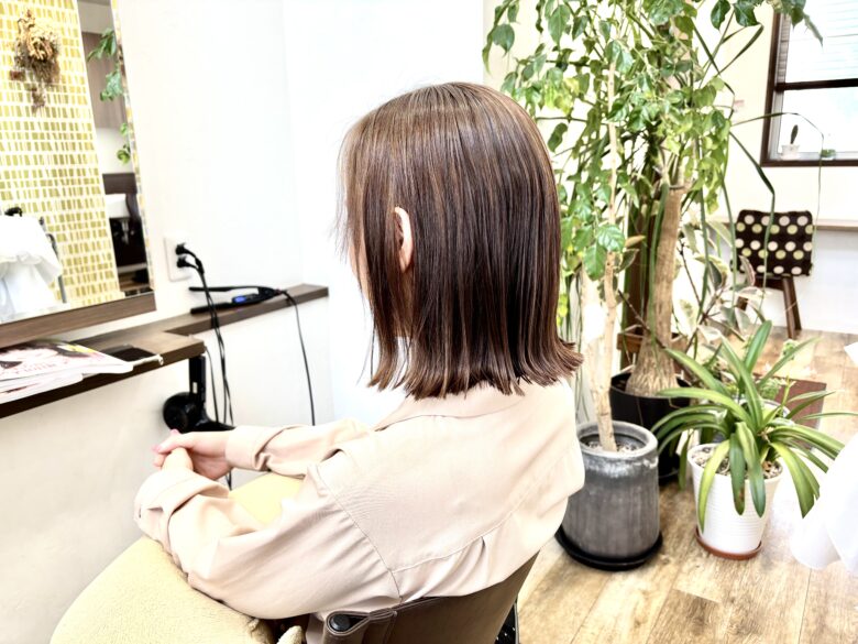 一般的な白髪染めって根本から毛先まで全部白髪染めを使うから透明感も出ないし暗くなってしまうので、根本が生えてきたら目立つのです。