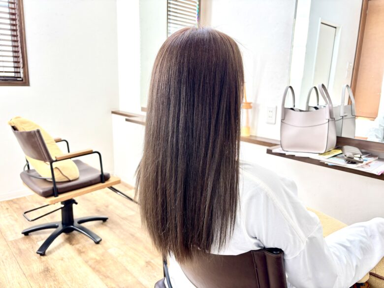 いつもは暗くするといっても色味を優先しているので1か月もすれば元の明るさに戻せるようにしているのですが今回はブラウン単品でしっかりと落ち着かせて色が抜けないようにします。