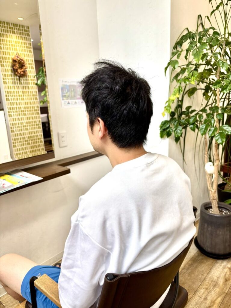 「前回切ったのが8月で結構伸びてきて重たいし、汗かくとすぐまとまらないから短めで!」とのオーダーでした。