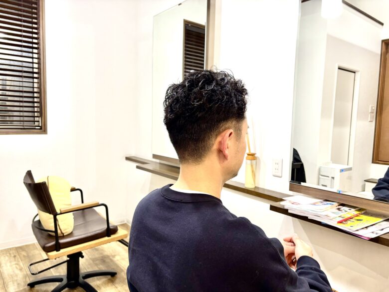 強めのパーマは、ただ“クルクルする”だけではなく、時間が経って馴染んでくるとふわっとした空気感や立体感がしっかり出るので大人の男性ならではの落ち着きと色気が同時に味わえちゃったり出来ちゃったりして?!笑