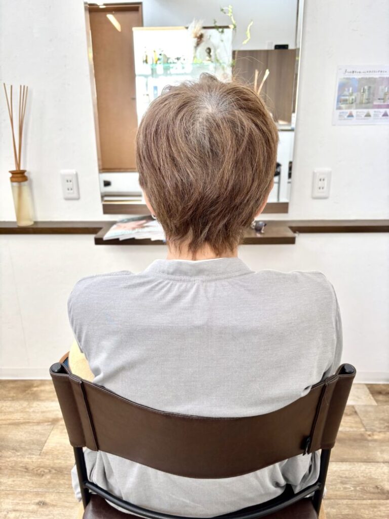 さて今日は、毎月白髪染めでご来店いただいているショートスタイルのハヤカさんです。