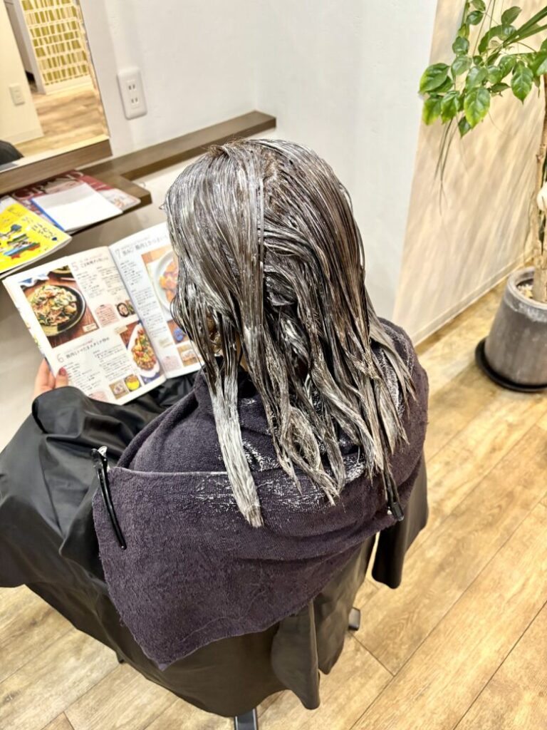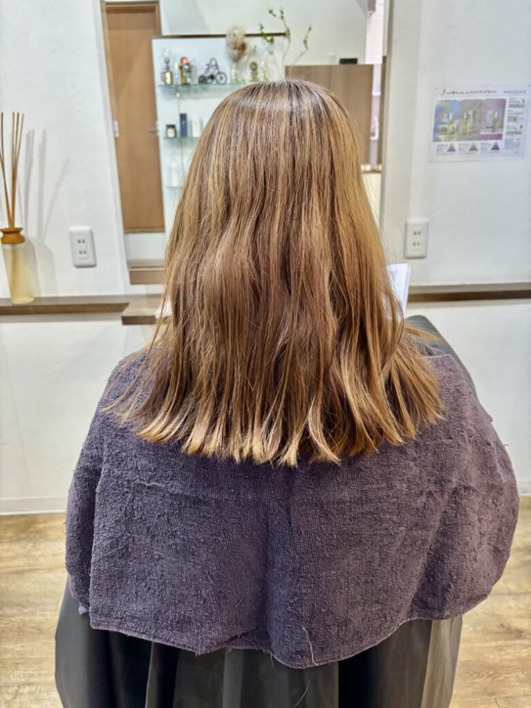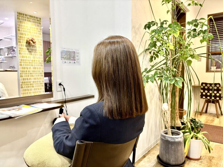 今回は「明るさは変えずに、色味だけちょっと整えたい」というご希望だったので、トーンはそのままキープしつつ、前回と同様に赤みが出にくいブラウン系でやさしく色味チェンジ。