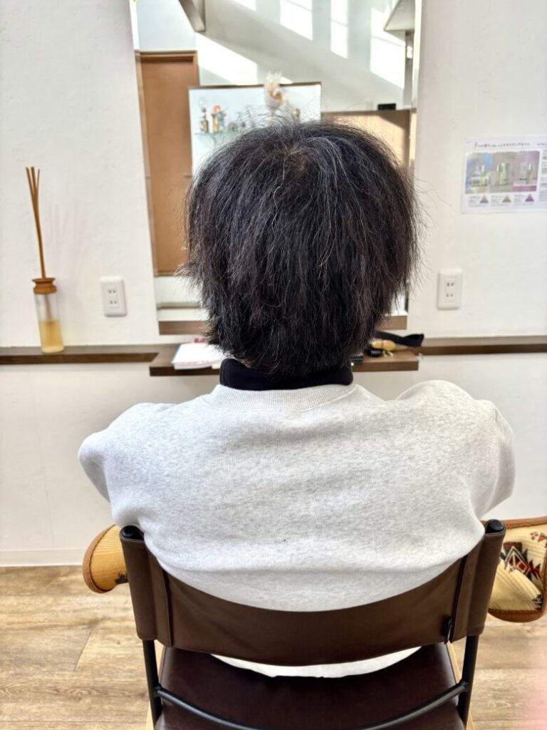 しばらく伸びてしまっていた分、全体的に重さとボリュームが出てきていたので、しっかりスッキリめに調整しつつツイストパーマで動きをプラスしていきましょう!