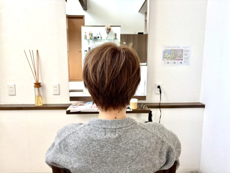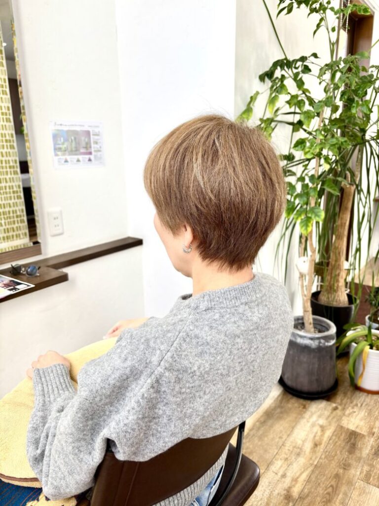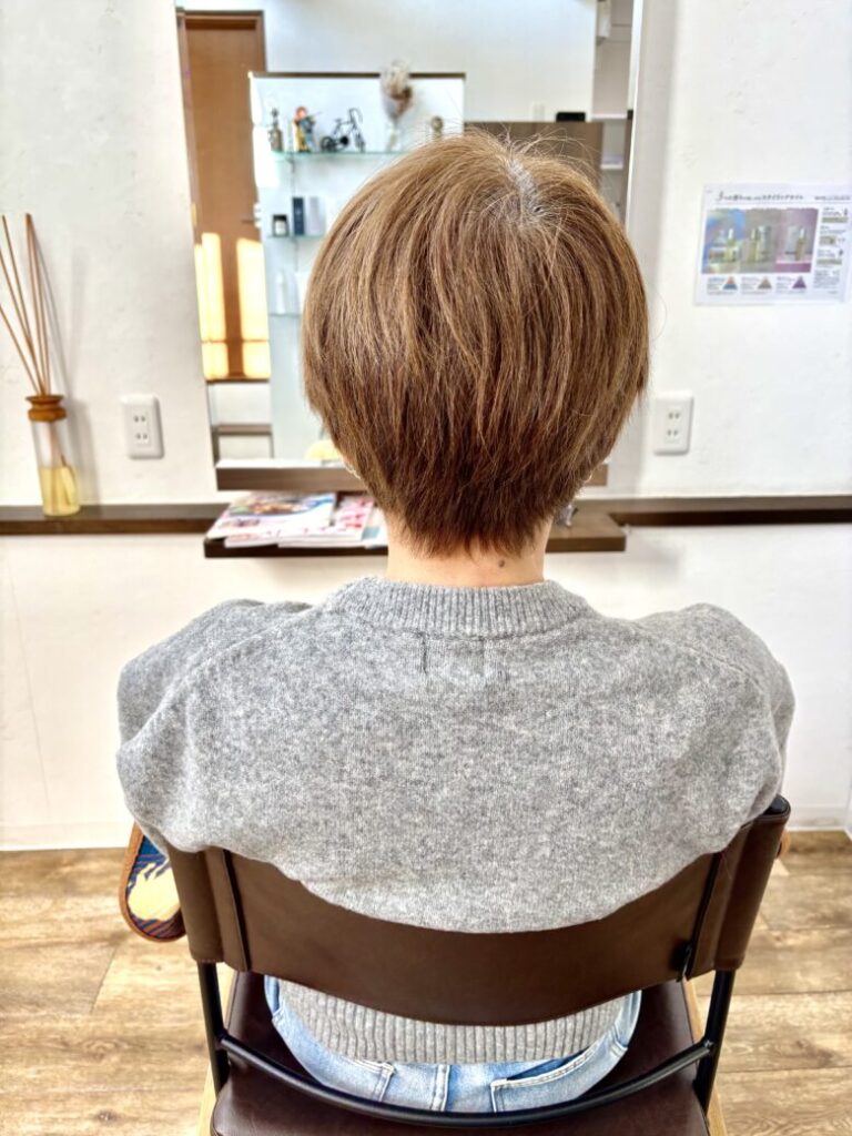 伸びてきた白髪も自然に馴染んで、毛先との色の差も気にならない仕上がりです。