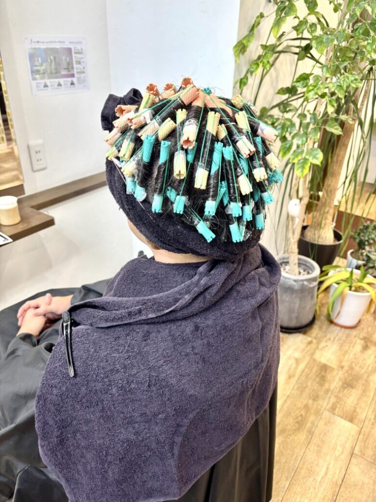 ここが甘いと、いくらロッドを細くしても動きが出にくいので、髪の状態を見ながら丁寧にコントロールしています。