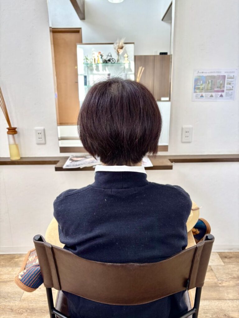 横から見たときや後ろ姿も大事にしていて、後頭部から襟足へのつながりが自然になるように調整してカットしていきます。