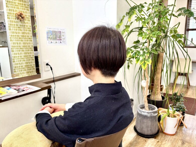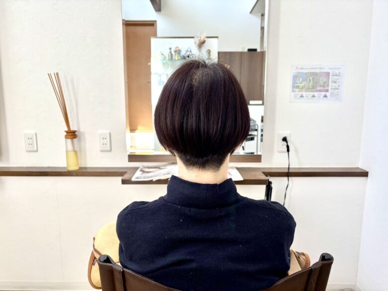 首まわりはすっきりしているのに、全体はちゃんと「マッシュ感のあるショート」ってイメージです。