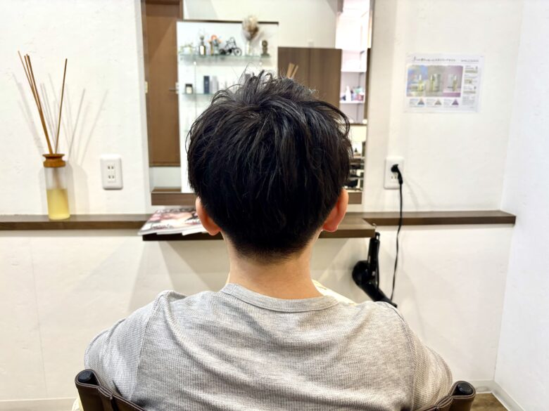 今年から中学生になるので、いつもは周り一周ツーブロックにしていますが、今回は慣らしという事でいきなり攻めすぎず、後ろは刈り上げてサイドだけ控えめツーブロックに。