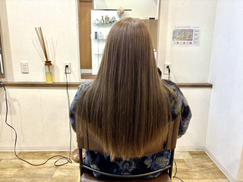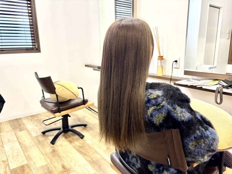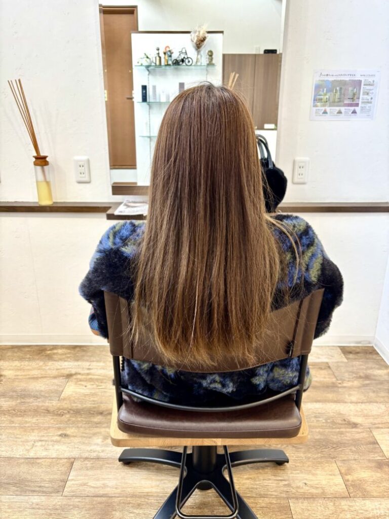 毛先のバラついたところは少し整えながら長さはキープしつつ、カラーで気持ちを落ち着かせました。