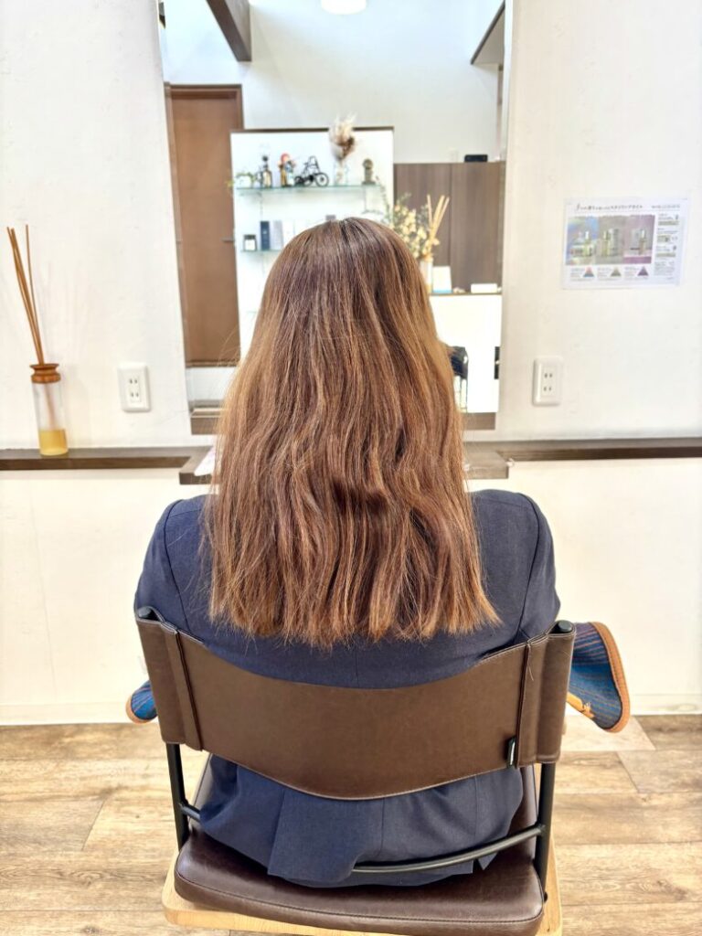 普段の仕事中は一つにまとめているので、後ろのクセは全然気にならないみたいなので、休みの日はストレートアイロンもしくはコテを使ってスタイリングしてクセと上手く付き合っているのが素晴らしい^ ^