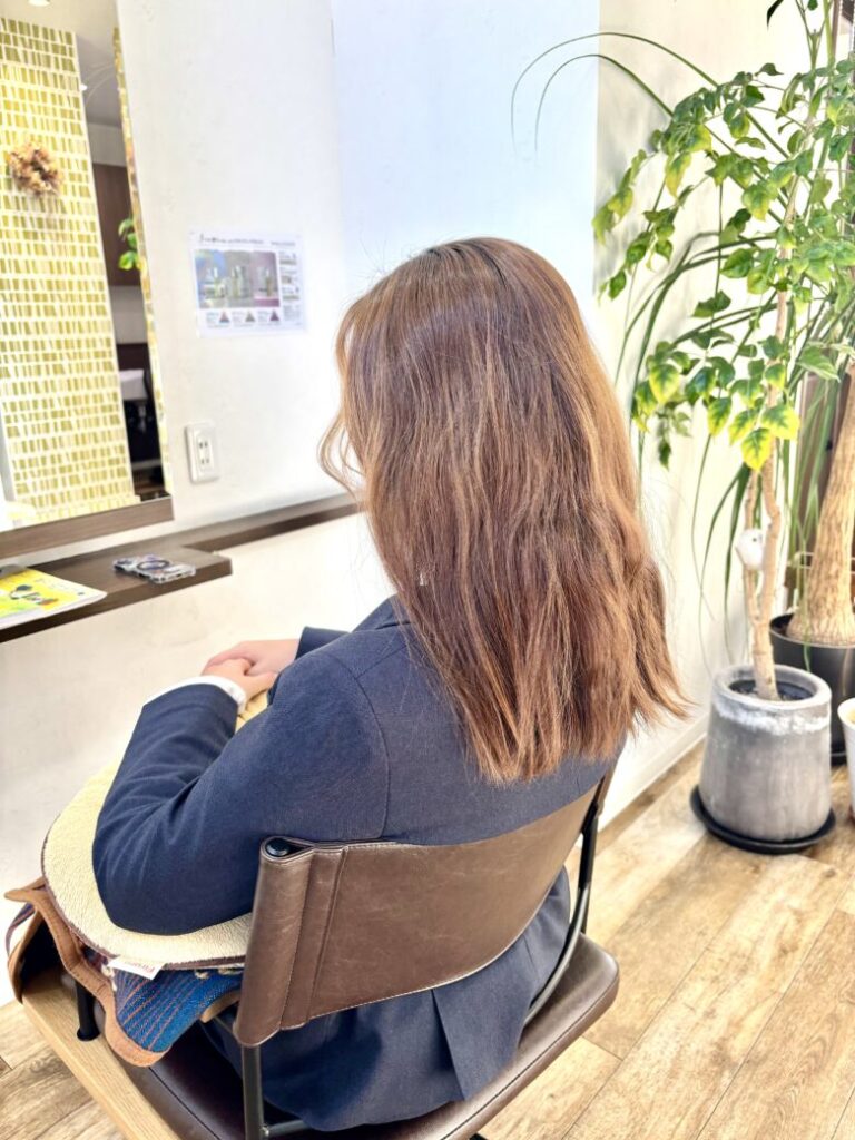 今から帰るだけとの事なので、仕上げはストレートアイロン前髪付近だけ軽く整えるくらいにして後ろはドライヤーしただけなので少しクセが出てますね~